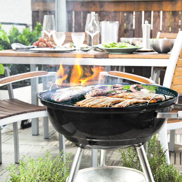 Herzhafter Grillgeruch. Stimmungsvolle Unterhaltung. Spielende Kinder.