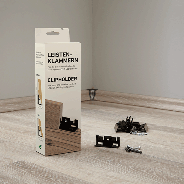 KRONOTEX bietet spezielle Zubehörprodukte an, die für die Installation von Sockelleisten verwendet werden können, einschließlich Sockelleisten-Clips.