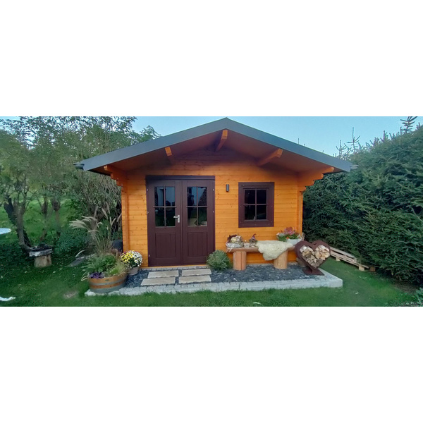 Zulana Blockhaus H45-3939-DT-EF Skand. Fichte Satteldach, Stärke: 45mm, 390x390cm