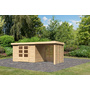 KARIBU Gartenhaus "Askola 4" SET naturb. mit Anbaudach 2,4m Breite, Feuerholzoption 2170x5220x2110mm