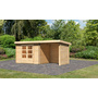 KARIBU Gartenhaus "Bastrup 3" SET naturb. mit Anbaudach 2,0m Seiten- und Rückwand 2370x4790x2170mm