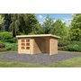 KARIBU Gartenhaus "Bastrup 4" SET naturb. mit Anbaudach 2,0m Seitenwand, Rückwand 2970x4190x2220mm