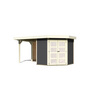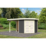 KARIBU Gartenhaus "Goldendorf 3" SET terragrau mit Anbaudach 2,4m Breite, Rückwand 2170x4330x2180mm
