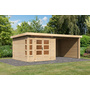 KARIBU Gartenhaus "Kastorf 6" SET naturb. mit Anbaudach 3,2m Rückwand, Seitenwand 2740x5650x2220mm