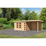 KARIBU Gartenhaus "Kerko 5" SET naturb. mit Anbaudach 2,8m Breite, Rückwand 2460x5570x2100mm