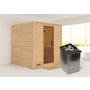 WOODFEELING Massivholzsauna Mojave mit Tür graphit SET mit Ofen 9kW integr. Strg. 1960x1950x2000mm
