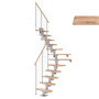Dolle Mittelholmtreppe Dublin + Edelstahlgeländer, 12 Stufen, Buche 65cm Treppenl 1/4gewend. Metallkomp perlgrau