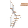 Dolle Mittelholmtreppe Dublin + Einzelstabgel., 13 Stufen, Buche 65cm Treppenl 1/4gewend. Metallkomp perlgrau