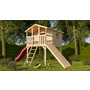 AKUBI Stelzenhaus Benjamin SET naturbelassen mit Holzrampe Rutsche 3m rot