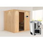 WOODFEELING Systemsauna Daria mit Tür graphit und Kranz SET Ofen 3,6kW Bio-Ofen externe Strg. Easy 2100x1840x2020mm