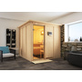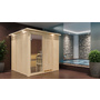 WOODFEELING Systemsauna Rodin mit Klarglastür und Kranz SET Ofen 9kW Bio externe Strg easy 2100x2100x2020mm